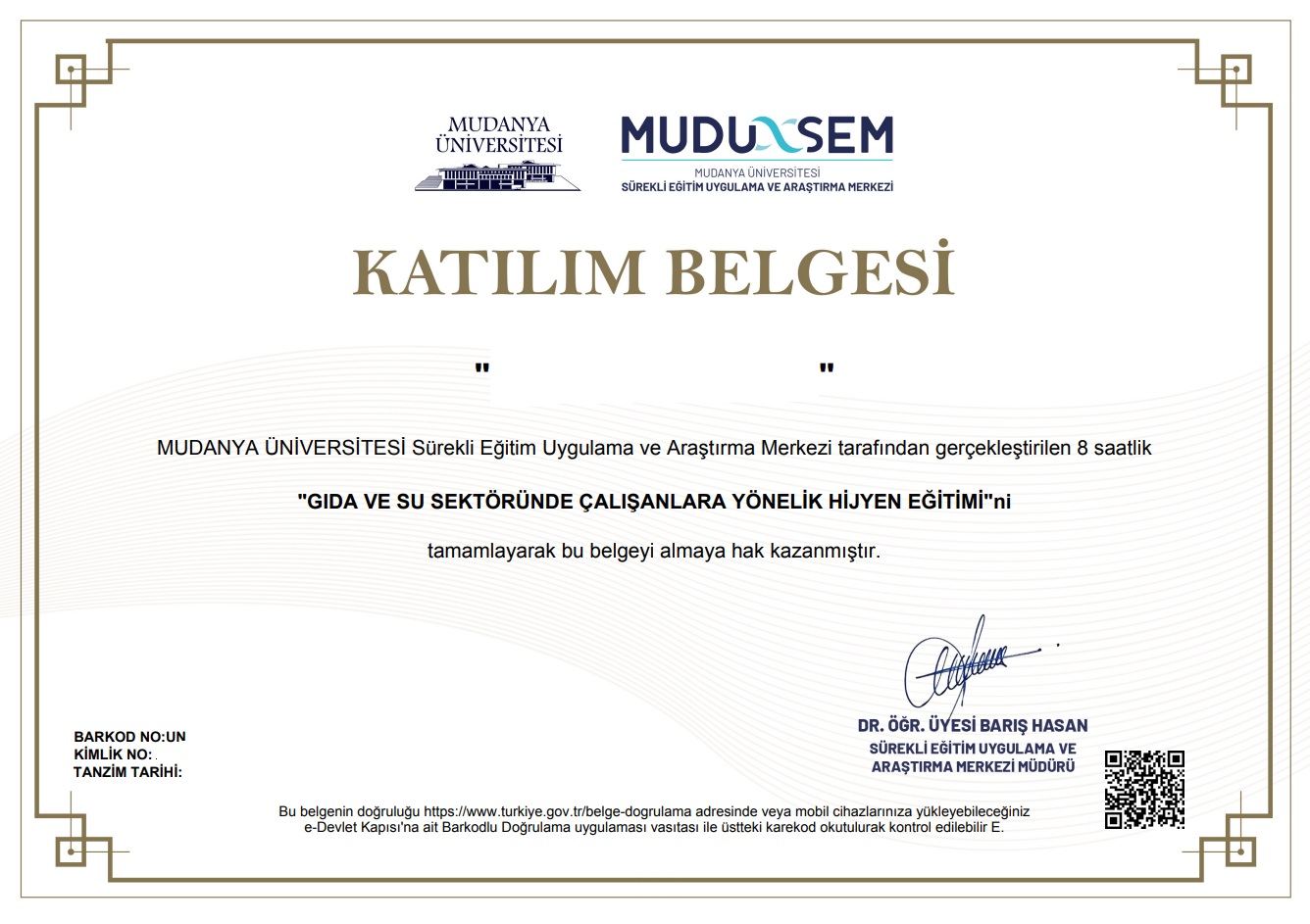 - Mudanya Üniversitesi Onaylı Belge